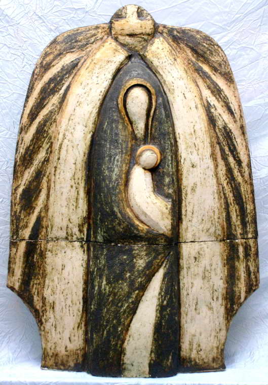 Nemes Fekete Edit: Boldogasszony Oxidos patinás kőcserép térpla 74×52×21 c cm 2000