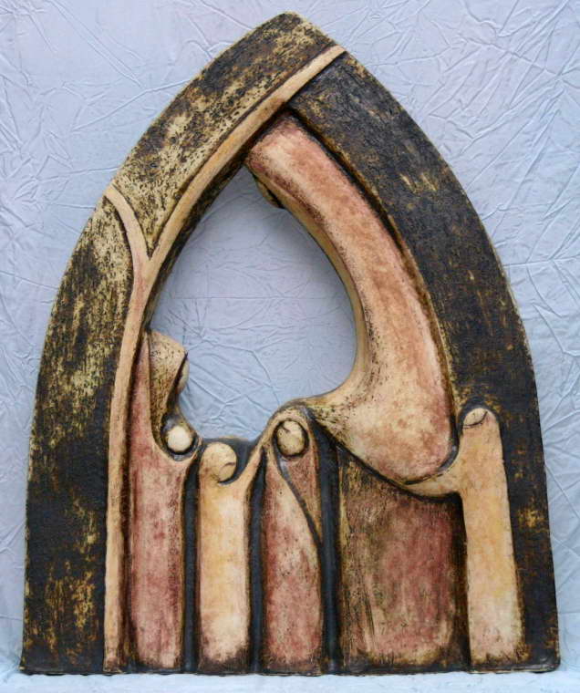 Nemes Fekete Edit: Szent Erzsébet Oxidos patinás kőcserép térpla 54×42×9 cm cm 2000